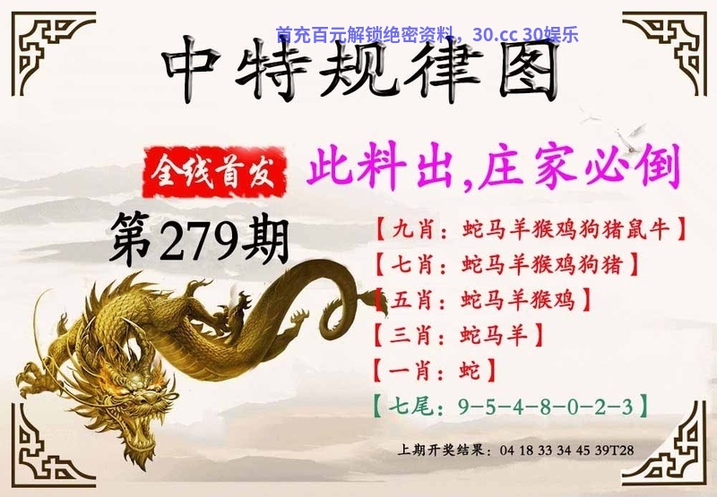 278期:九肖✡龙鼠牛兔马狗蛇虎羊✡开:虎28准 |