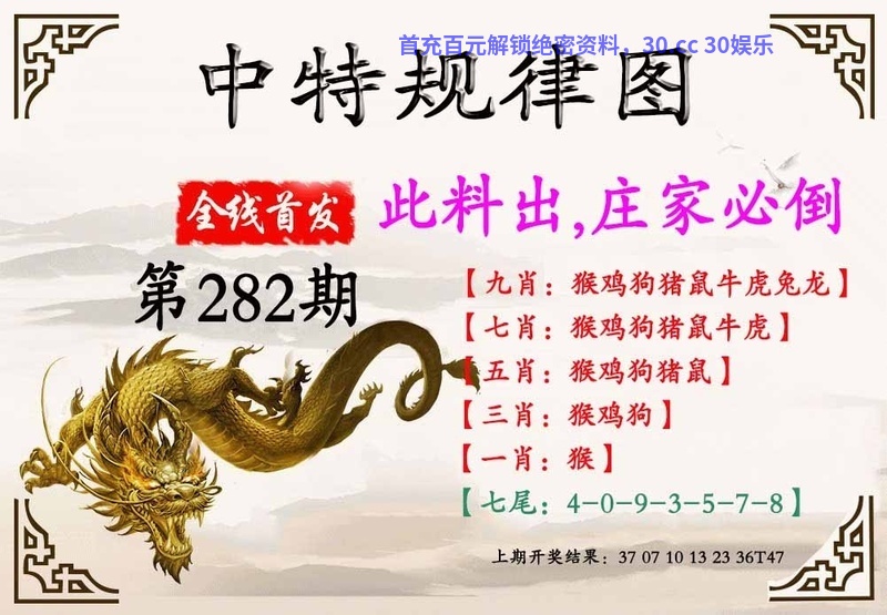 282期:⇝三季中特⇜春秋夏⇝开:牛41错 |